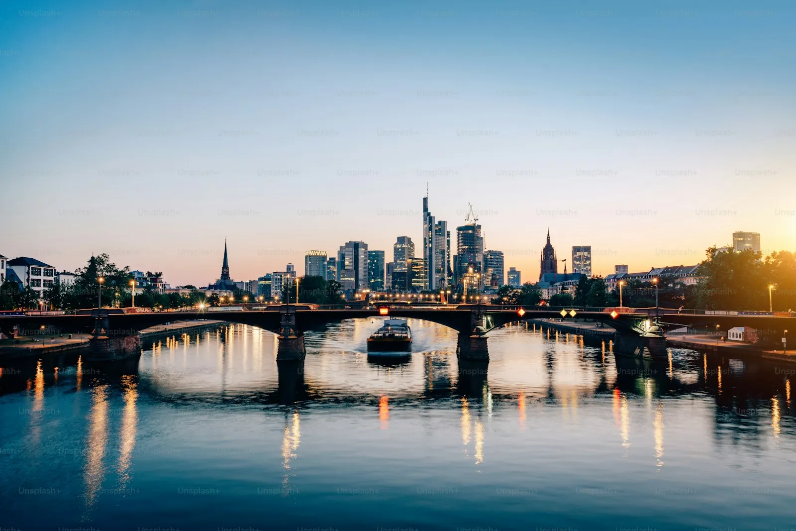 Final dinner at Haus Wertheym on Fahrtor — the only half-timbered house that survived the WWII bombing, serving traditional Frankfurt cuisine since 1479 (mains €14–22). Or keep it budget at Kleinmarkthalle for a last round of market food. End the night on the Eiserner Steg bridge at dusk — the Frankfurt skyline (nicknamed "Mainhattan") reflected in the river is one of Europe's great urban views.