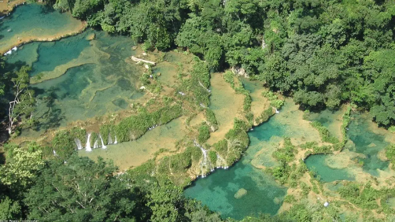 Turquoise limestone pools suspended above an underground river deep in the Guatemalan jungle — Central America's most breathtaking natural wonder.